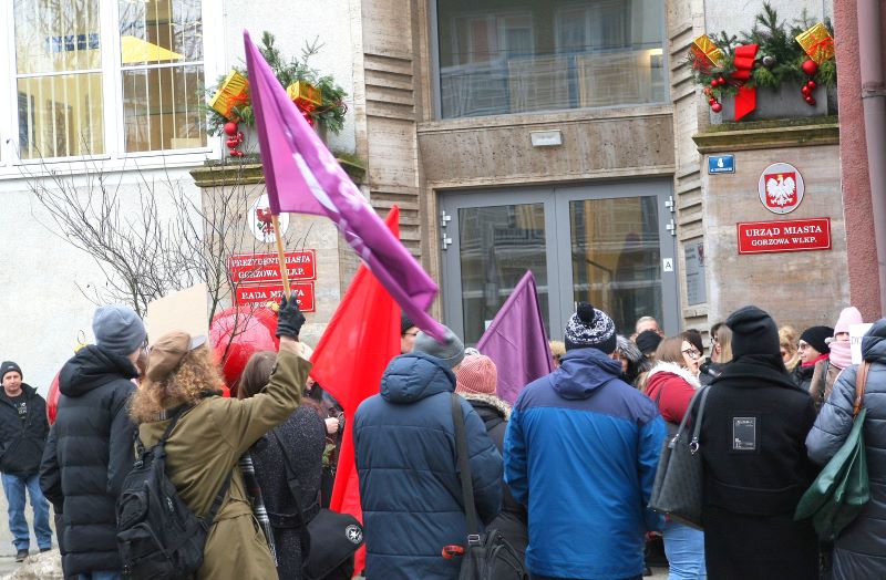 Pracownicy niepedagogiczni gorzowskiej oświaty spotkali się pod Urzędem Miasta, żeby wyrazić swoje duże niezadowolenie ze zmian warunków płacy.