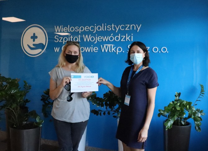 Agata Misiak, pierwsza laureatka losowania vouchera o wartości 300 złotych na badania laboratoryjne w Wielospecjalistycznym Szpitalu Wojewódzkim w Gorzowie. Właśnie odebrała swoją nagrodę. Na wykorzystanie vouchera ma 3 miesiące.