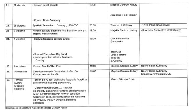 Planujemy również organizację „Wartowni”, z ofertą koncertów i zajęć warsztatowych dla młodszych gorzowian. „Wartownia” jest planowana od 24 czerwca do 28 sierpnia.