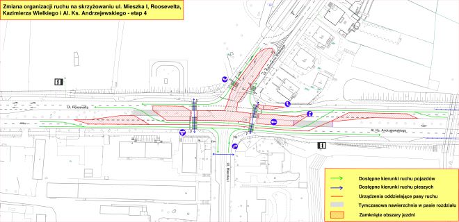 Zmiana organizacji ruchu na skrzyżowaniu ul. Mieszka I, Roosevelta, al. ks. Andrzejewskiego – etap 3 i 4.