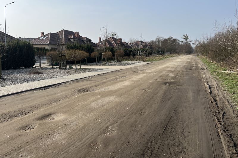 Przyjemniej będzie też na ul. Brukselskiej (na zdjęciu poniżej), a kurz, pył i dziury pozostaną jedynie wspomnieniem. Wkrótce i tu pojawią się drogowcy, których zadaniem będzie wykonanie nowej nawierzchni. Prace powinny potrwać do końca roku.