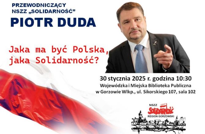 W czwartek, 30 stycznia do Gorzowa przyjedzie Piotr Duda, przewodniczący Komisji Krajowej NSZZ „Solidarność".