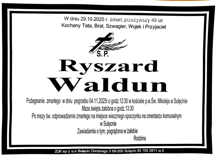 Pogrzeb zmarłego 29 października Ryszarda Walduna zaplanowano na najbliższy wtorek, 4 listopada.