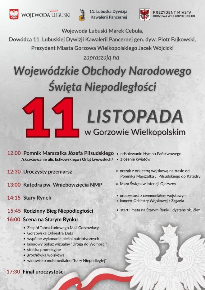 W tym roku wojewódzkie obchody Narodowego Święta Niepodległości odbędą się w Gorzowie Wielkopolskim.