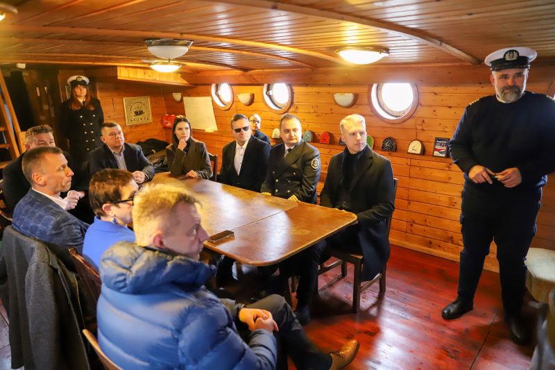 W ramach wizyty wiceminister m.in. odbył rejs zabytkowym lodołamaczem „Kuna” do Gorzowskiego Portu Zimowego.