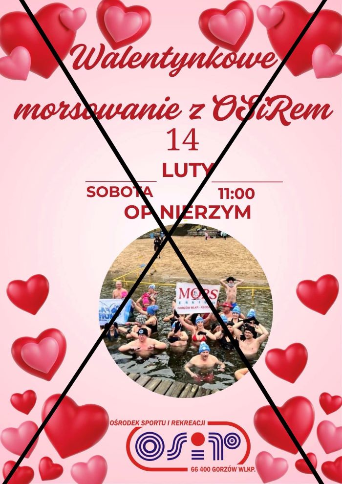 - Z przykrością informujemy, iż walentynkowe morsowanie na OP Nierzym zostaje odwołane z powodu zbyt grubego lodu i braku bezpiecznych warunków. Dziękujemy za zrozumienie. I do zobaczenia następnym razem – taki pojawił się właśnie komunikat na stronach Ośrodka Sportu i Rekreacji.