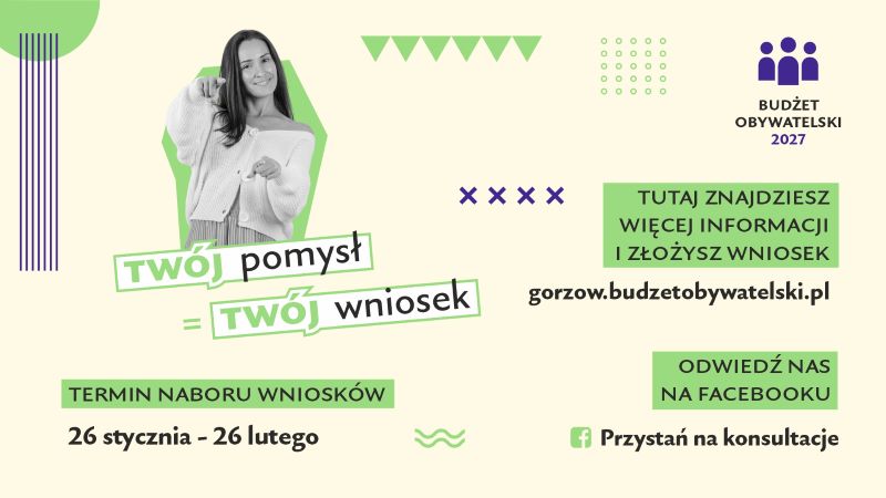 Nabór zakończy się w czwartek 26 lutego. Projekty można składać na stronie www.gorzow.budzetobywatelski.pl lub w formie papierowej w kancelarii Urzędu Miasta przy ul. Sikorskiego 5. Szczegóły na ww. stronie. Zachęcamy także do śledzenia informacji na FB|Przystań na konsultacje.