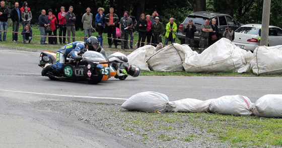 Sidecary, czyli trójkołowe motocykle z wózkami uznaje się za najniebezpieczniejszą i najbardziej widowiskową formę sportu motocyklowego. Maszyny te regularnie oglądać można w Brannie, a od lat starują na nich również Polacy. Od dwóch lat pojawia się Wioletta Kowalczyk z Michałem Pokrywieckim na BSA 650. W tym roku po raz kolejny załoga stanęła na podium. Sidecarem Triumph 650 jechali Szymon Spychała i Tomasz Korzyniewski z polskiego Lightseedteamu. Zawodnicy ci wcześniej odebrali wieńce za występy solowe na BSA i Triumphie.