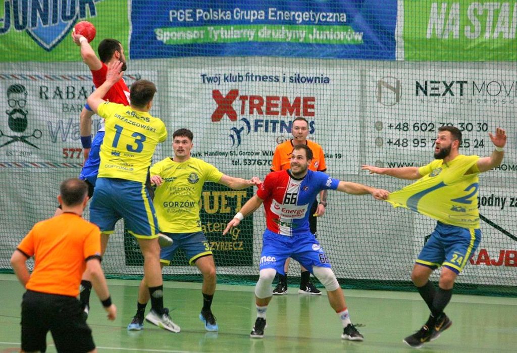 Przełom nastąpił w 21 minucie, kiedy było 9:8. Gorzowianie do końca pierwszej połowy zdobyli jeszcze pięć goli, zaś goście odpowiedzieli tylko jednym trafieniem i na przerwę drużyny zeszły przy stanie 14:9.