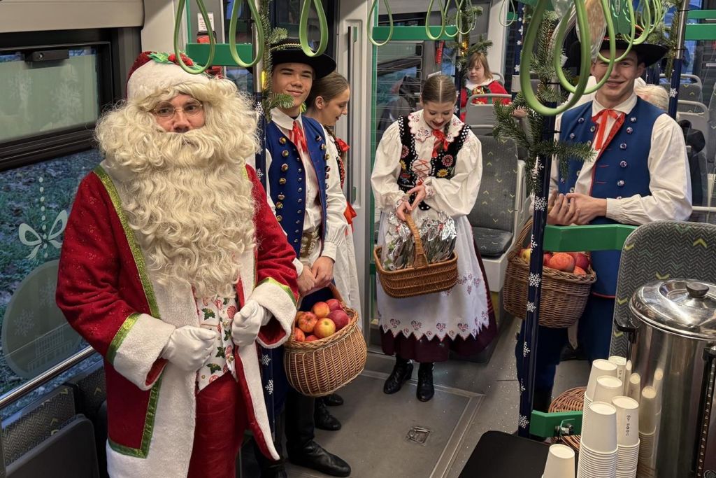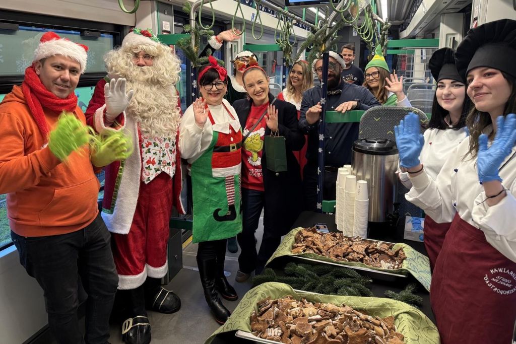 Przez całe sobotnie popołudnie w wagonie panowała prawdziwie świąteczna atmosfera – dzieci spotykały Świętego Mikołaja, dorośli zanurzali się w kolędach i zimowych melodiach, a każdy pasażer mógł liczyć na ciepły uśmiech i drobny upominek.