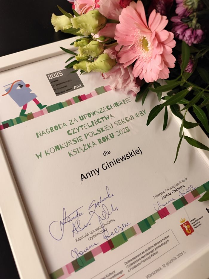 Trzy pytania do Anny Giniewskiej, zdobywczyni nagrody za upowszechnianie czytelnictwa w prestiżowym konkursie Polskiej Sekcji IBBY „Książka Roku 2025”.