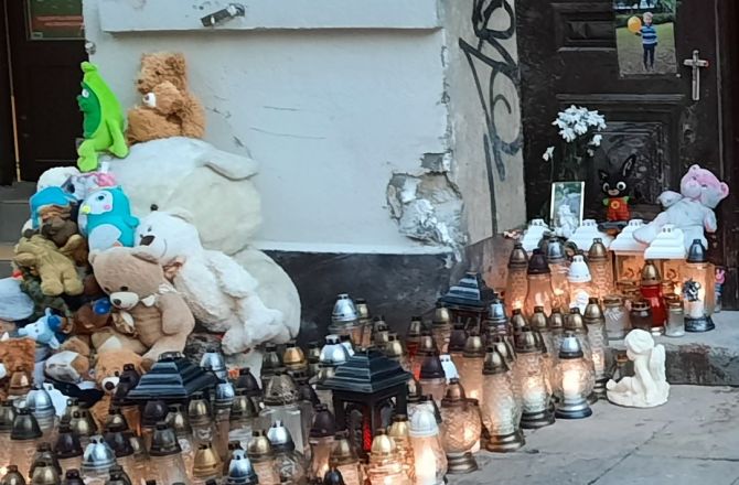 Na drzwiach kamienicy, na której zatrzymał się chevrolet, który zabił dziecko, pojawiło się zdjęcie ofiary. Mały, śliczny chłopczyk. Trauma i żal robią się coraz większe. Coraz więcej zniczy się pali, coraz więcej ludzi przychodzi na to miejsce. Nikt nie chce zapomnieć.