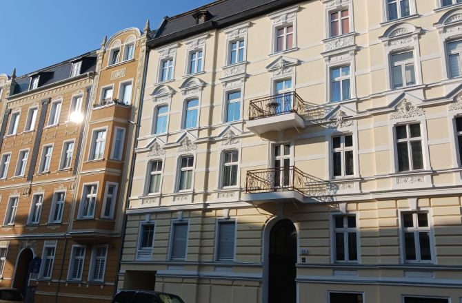 Niedziela, piękne słońce, idę do pracy i nagle zachwyt. Bo oko łowi odnowione, co prawda jakiś czas temu, ale jednak, fasady. I zaczyna się bajka. Oglądanie detali, patrzenie na całość. Bo zwyczajnie osiągnięto piękny efekt. I nagle żal, że mnie i mojej wspólnoty jednak na razie i chyba długi na razie nie będzie stać na taki wydatek.