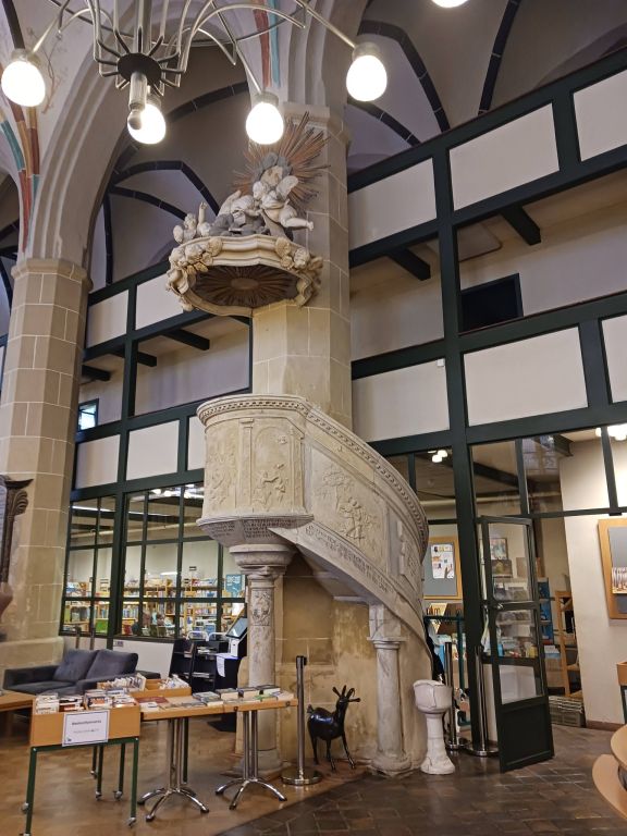 Największe moje zaskoczenie, zdumienie i zachwyt wzbudziło zagospodarowanie starego, gotyckiego kościoła właśnie w Jüterbog. Obecnie jest tam biblioteka, księgarnia, miejskie archiwum, sala koncertowa i właśnie punkt informacji miejskiej i turystycznej. Dodam, że miasto to ma kilkadziesiąt wysokiej klasy zabytków – jak bramy miejskie, jak baszty obronne, jak przepiękne i zachowany ratusz miejski, jak szachulcowa zabudowa…. No wymieniać można w nieskończoność. I absolutnie nie leży na szlakach turystycznych, trzeba tam jechać specjalnie. A jak już ktoś trafi, to zachwyt rośnie i rośnie.