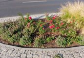 Co prawda dookoła beton i asfalt, ale kilka różyczek od razu poprawia człowiekowi humor. Dobrze, że choć w malutkich kawałeczkach można oko na zieleni zaczepić.