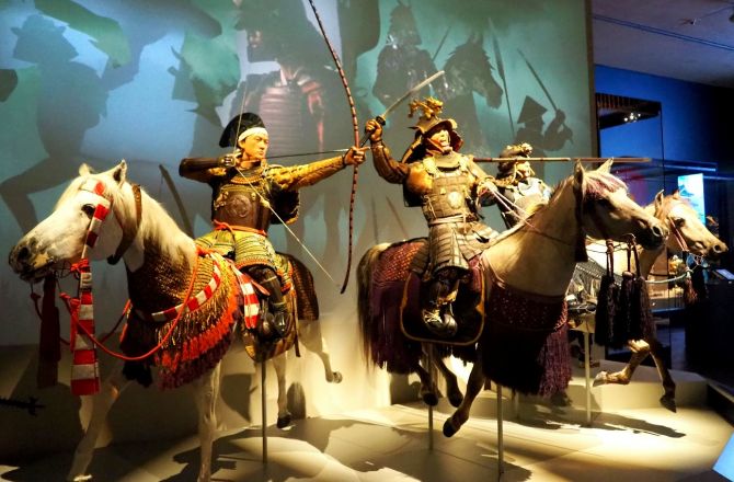 Twórcy muzeum zadbali także o to, aby zobaczyć samurajów w walce. Można popatrzeć na upozowany atak – figury mają niezwykłą ekspresję wzmocnioną projekcją, jaka się odbywa za nimi. Jest także mała inscenizacja obecności kobiet w tym męskim świecie, ale generalnie zgodnie z nazwą, znakomita większość kolekcji skupia się na męskim świecie twardych wojowników.