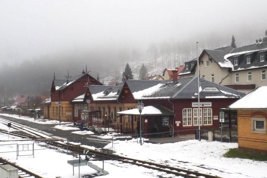 Ale Oybin to nie tylko pozostałości klasztoru. To także mała, szalenie malownicza stacyjka kopciucha, czyli kolejki wąskotorowej, która dojeżdża tu z Żytawy (Zittau). Budyneczek jest w znakomitym stanie, świetnie utrzymany, z kawiarenką, w której można napić się naprawdę dobrej kawy, zjeść lokalne ciasto, odpocząć i pogapić się na kolejkę.