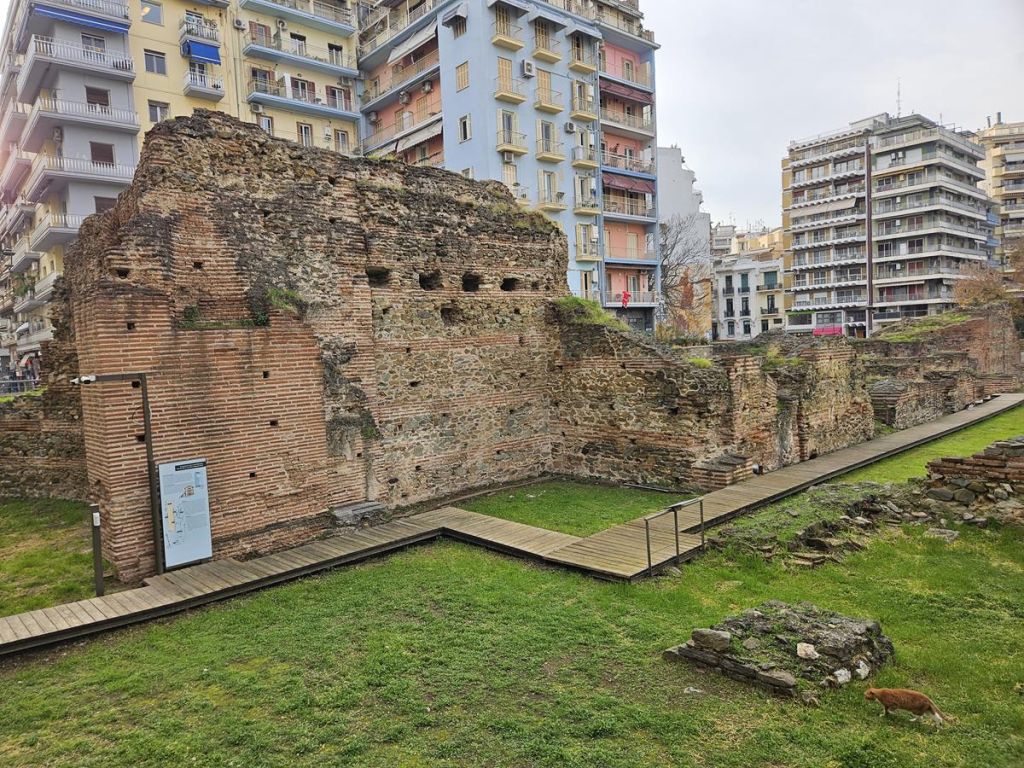 W drugim etapie zwiedzania proponujemy zobaczyć to wszystko co znajduje się w pobliżu promenady. Na początek obowiązkowym punktem jest zaglądnięcie do zbudowanej na początku IV wieku rzymskiej świątyni, zwanej Rotundą, słynącej z wczesnochrześcijańskiej mozaiki znajdującej się pod kopułą. Stamtąd idziemy w kierunku pobliskiego Łuku Galeriusza i pozostałości Pałacu Galeriusza aż dojdziemy do Białej Wieży. Zwiedzanie tego obiektu trochę potrwa ze względu na kilka pięter ekspozycji. Na szczycie wieży znajdziemy zaś taras widokowy z pięknymi widowiskiem na miasto i Zatokę Salonicką. Wszędzie wokół znajdują się liczne kościoły, wszystkie warte zobaczenia, nawet poprzez krótkie wejście. Najwięcej czasu należy zarezerwować na zwiedzanie Bazyliki św. Dymitra. Będąc tam należy też zajrzeć do ruiny zbudowanego w II wieku rzymskiego forum z odrestaurowanym amfiteatrem oraz wydrążonymi korytarzami i łukami.