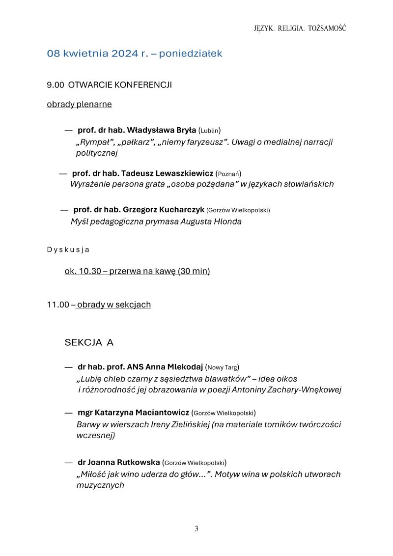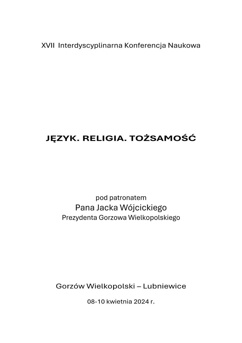 W lubniewickim hotelu WOIŃSKI SPA przy ul. Ratuszowej 3 w dniach 8-10 kwietnia odbędzie się XVII Interdyscyplinarna Konferencja Naukowa JĘZYK. RELIGIA. TOŻSAMOŚĆ.