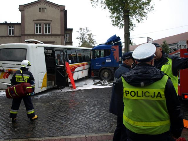 W autobus szkolny jadący ulicą Gorzowską w kierunku Gorzowa uderza TIR z cysterną.