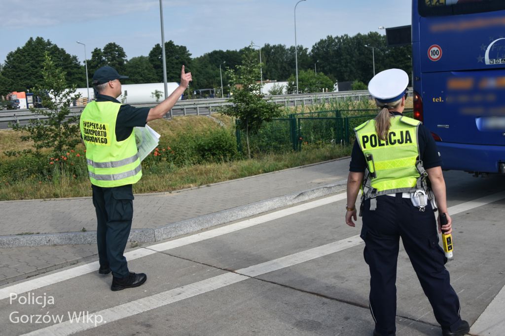 Gorzowscy policjanci ruchu drogowego wspólnie z funkcjonariuszami Inspekcji Transportu Drogowego kontrolują pojazdy jadące główną trasą zachodniej Polski nad morze.