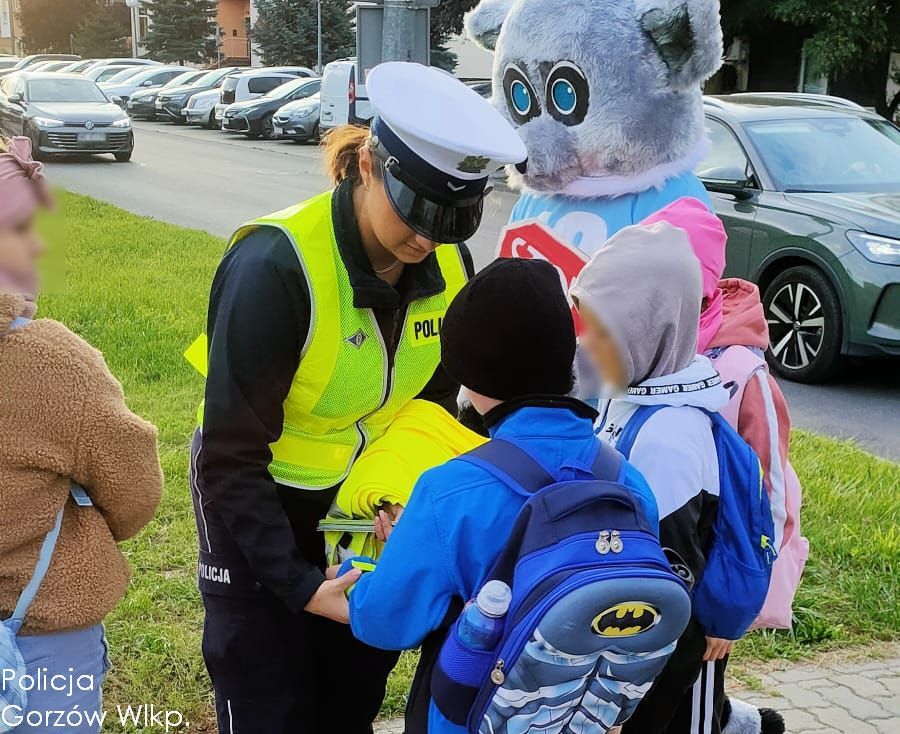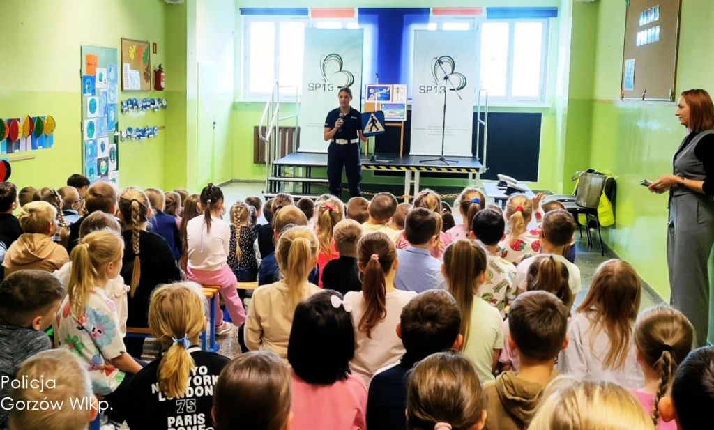 Ogólnopolski konkurs „Odblaskowa szkoła" już trwa. Gorzowscy policjanci prowadzą spotkania w szkołach, aby zachęcać najmłodszych do noszenia odblasków i uświadamiać, jak ważna jest widoczność na drodze i jak wpływa na bezpieczeństwo.