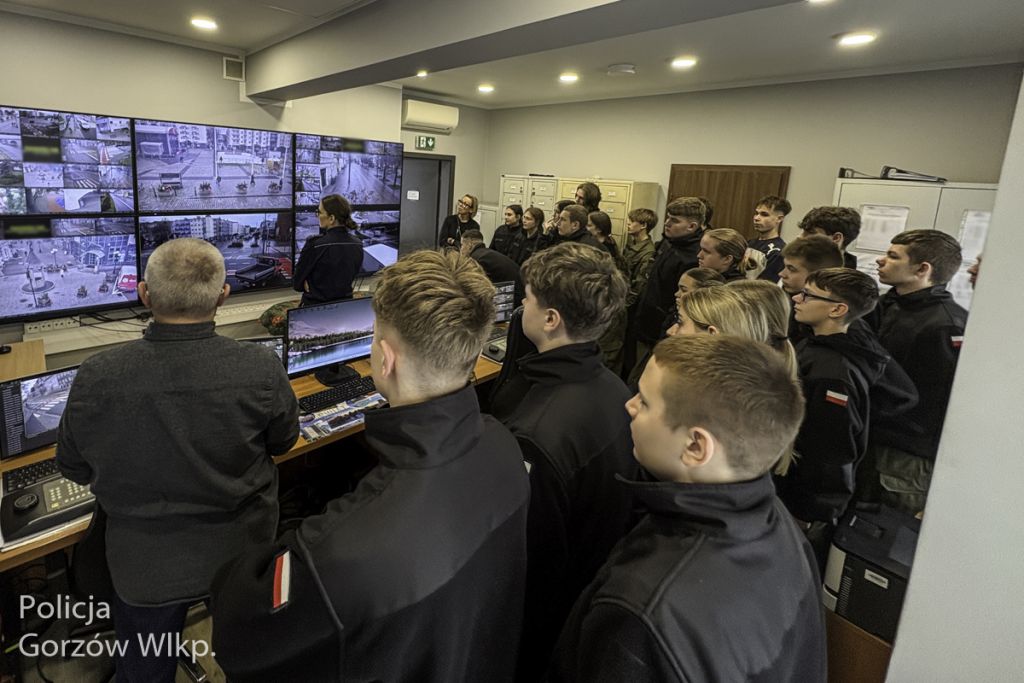 Wizyta oddziałów mundurowych to także doskonała okazja do tego, by przyszli funkcjonariusze już dzisiaj zgłębiali tajniki policyjnej służby. Młodzież miała okazje przejść korytarzami komendy, by po drodze zapoznać się ze specyfiką pracy w poszczególnych wydziałach. Uczniowie zobaczyli także centrum miejskiego monitoringu.