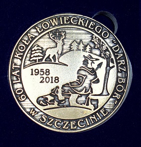 Medal z wizerunkiem św. Huberta wybity z okazji 60-lecia KŁ „Darz Bór” Szczecin