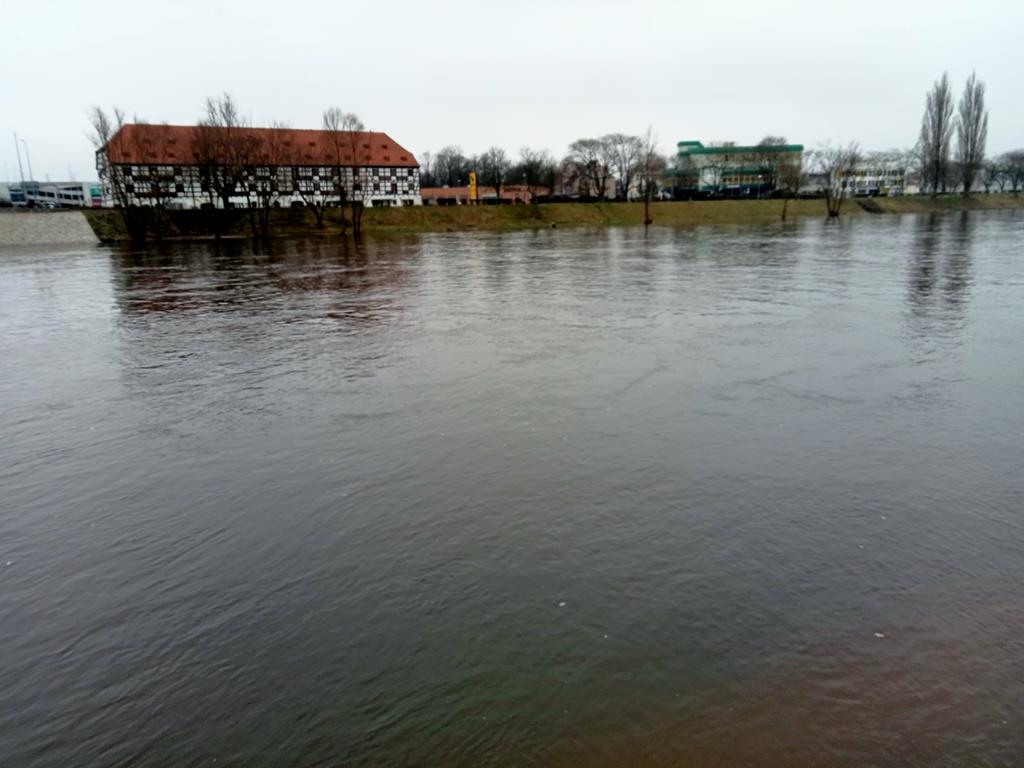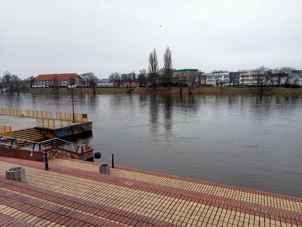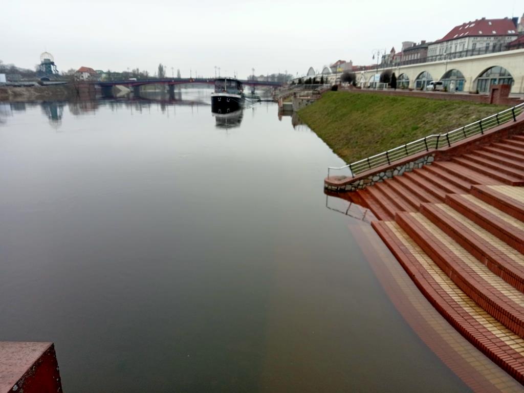 Od pewnego czasu nie można korzystać z dolnych bulwarów, ale trudno to czynić, skoro są one zalane. Poziom rzeki jest już na tyle też wysoki, że zrównał się ze ścieżką pieszo-rowerową, idącą w kierunku Mostu Lubuskiego. Niewiele brakuje, żeby woda zalała ten ważny dla spacerowiczów odcinek trasy oddany do użytku przed trzema laty.