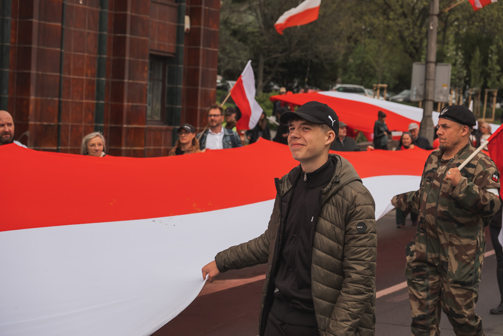 Kilkudziesięciu mieszkańców Gorzowa oraz okolic zebrało się popołudniu 2 maja na Placu Grunwaldzkim, aby w akompaniamencie patriotycznej muzyki ponieść 50-metrową flagę Polski na Stary Rynek przy katedrze.