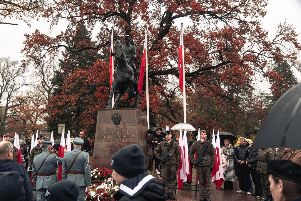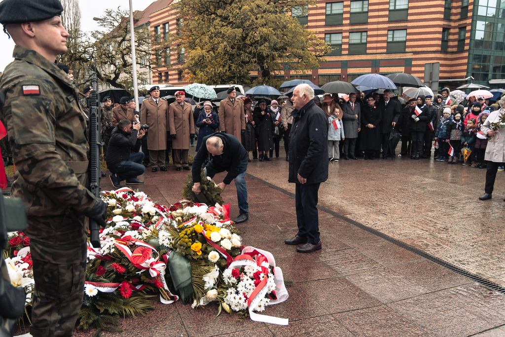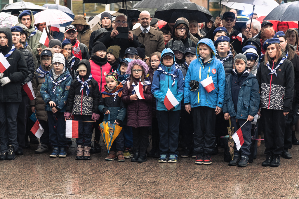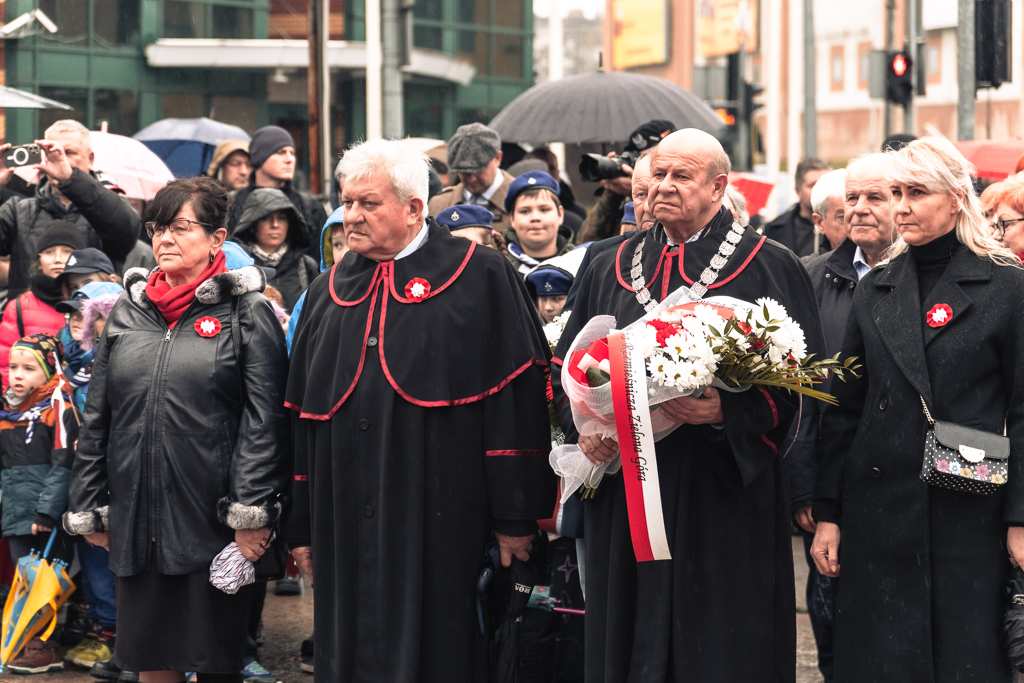 Mimo niesprzyjającej pogody, na głownej uroczystości pojawiło się bardzo wielu gorzowian. Oficjalna część obchodów rozpoczęła się pod pomnikiem marszałka Józefa Piułsudskiego, gdzie odśpiewano Mazurka Dąbrowskiego.