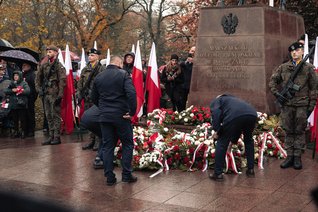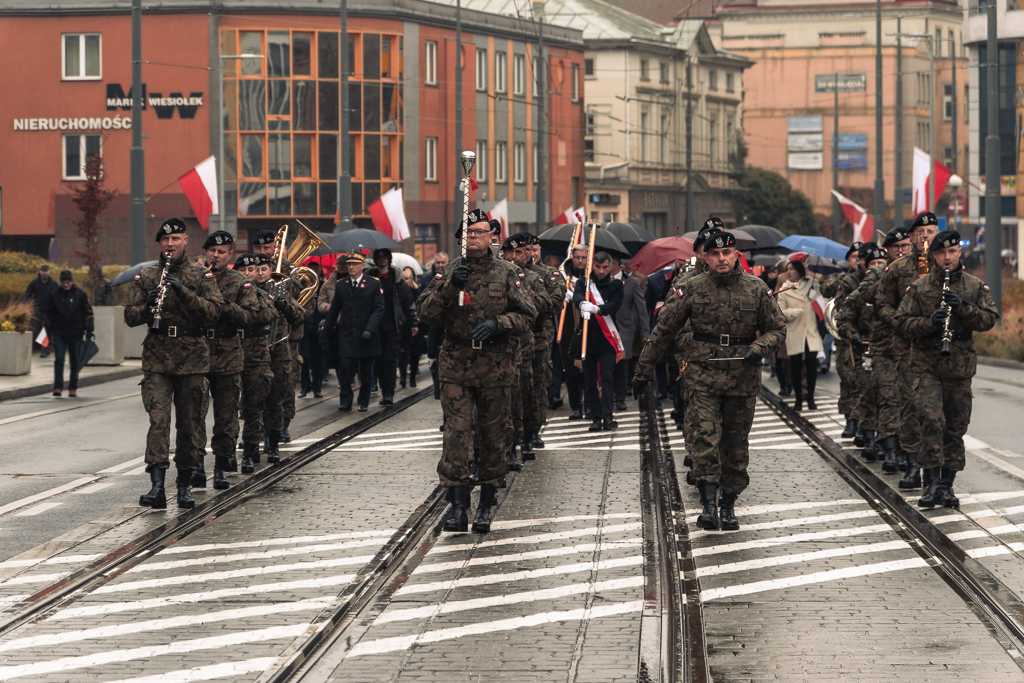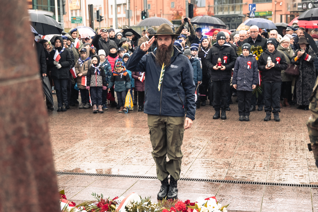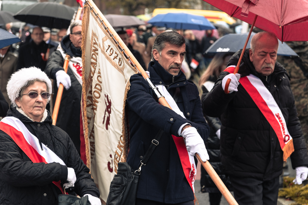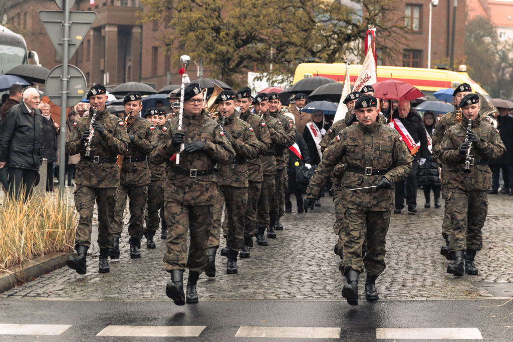 Mimo niesprzyjającej pogody, na głownej uroczystości pojawiło się bardzo wielu gorzowian. Oficjalna część obchodów rozpoczęła się pod pomnikiem marszałka Józefa Piułsudskiego, gdzie odśpiewano Mazurka Dąbrowskiego.