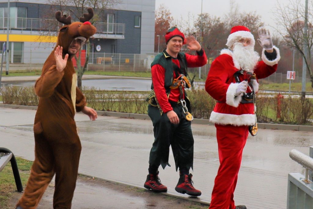 Tak naprawdę w Mikołaja i świtę wcielili się panowie: Arkadiusz, Grzegorz, Kamil, Jan i Marek. Zanim powitali się z małymi pacjentami najpierw zainstalowali na dachu bloku H liny (co bacznie obserwowali przechodnie), żeby potem zjechać na nich do dzieci.