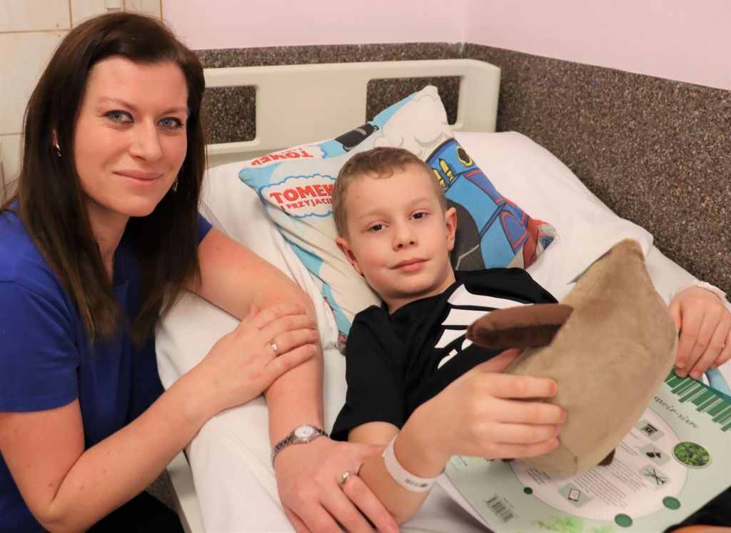Leśny patrol serdecznie przywitał kierujący oddziałem doktor Tomasz Grzechnik, a potem już w asyście Anny Matys, pielęgniarki koordynującej oddziału, wysłannicy leśnego Mikołaja rozdawali znane z właściwości zdrowotnych maskotki do przytulania, edukacyjne książeczki i inne upominki.