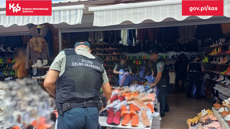 Funkcjonariusze SCS zabezpieczyli 427 par obuwia z zastrzeżonymi znakami towarowymi oraz napisami siedmiu markowych firm. Szacunkowa wartość ich oryginalnych odpowiedników wynosi prawie 270 tys. zł.