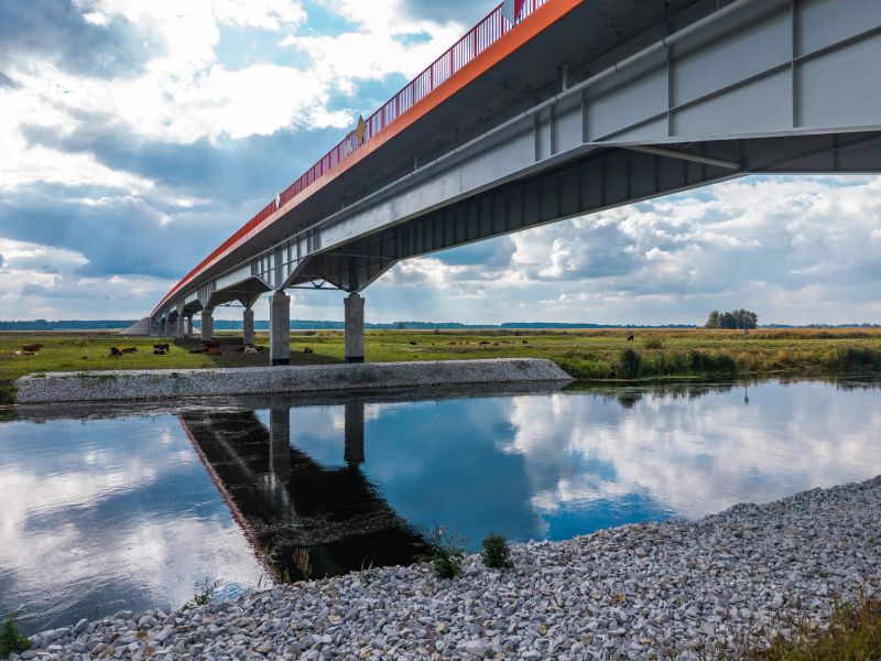 w IV kwartale 2026 r. Roboty budowlane prowadzone były nieprzerwanie od końca 2023 roku, w wymagających warunkach terenowych i hydrologicznych. Inwestycja realizowana była bowiem na obszarach zalewowych oraz w bezpośrednim sąsiedztwie cennych przyrodniczo terenów objętych ochroną Natura 2000, w otulinie lasów i doliny Noteci.