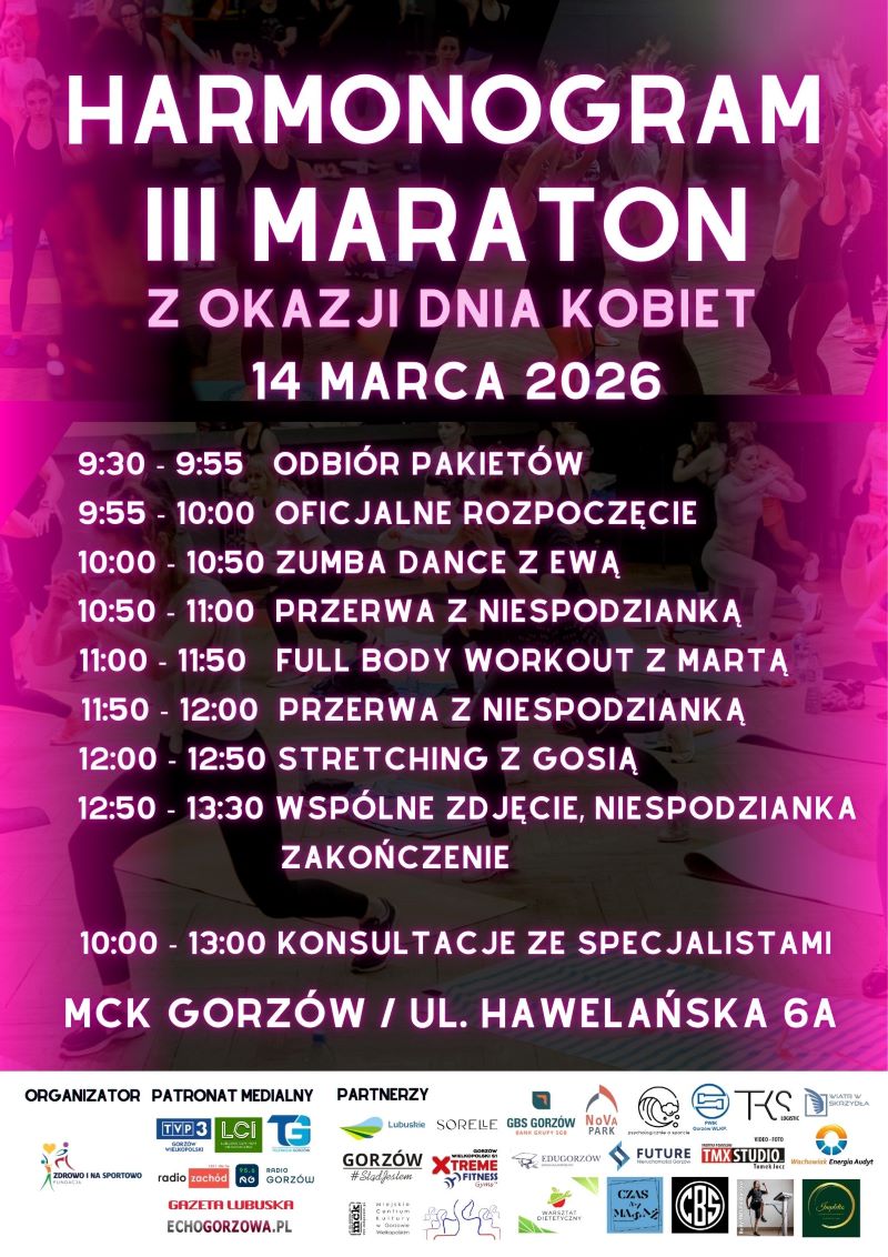 W sobotę, 14 marca zapraszamy na III MARATON FITNESS Z OKAZJI DNIA KOBIET w sali widowiskowej MCK przy ul. Hawelańska 6A.