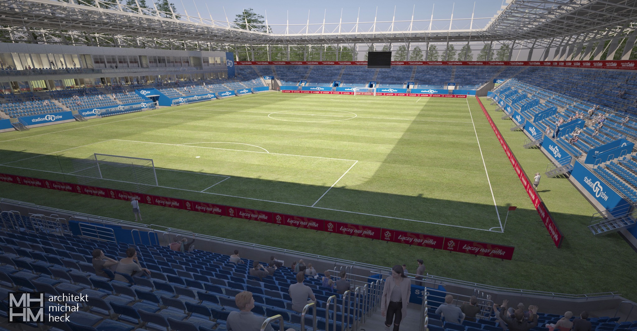 Jednak dopiero teraz opinia publiczna ujrzała nową koncepcję, a co bardziej spostrzegawczy kibice zauważyli, że jest to zupełnie inna dokument niż ten przygotowywany i optymalizowany przez Michała Hecka. Obecnie obowiązująca koncepcja została opracowana przez M-K Projekt Dawid Mołdrzyk z Krajenki. Zastanawiamy się, czy w chwili, kiedy biuro architekta Michała Hecka pracowało nad zmianami w innym biurze nie powstawała zupełnie nowa wizualizacja? A może decyzja ta zapadła dopiero w drugim półroczu 2025 roku, ale dlaczego zwrócono się do nowego biura, a nie pracowano na posiadanej już koncepcji? Pytanie to zadaliśmy GIM i czekamy na odpowiedź.