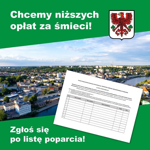 Rozpoczęło się zbieranie wśród gorzowian podpisów na listach poparcia dla poprawek do uchwały śmieciowej, która ma zacząć obowiązywać od stycznia 2026 roku. Korekty do uchwały zaproponował klub radnych Prawa i Sprawiedliwości gorzowskiej Rady Miasta, który powołał obywatelski komitet inicjatywy uchwałodawczej ,,Obywatele Gorzowa Wielkopolskiego w działaniu".